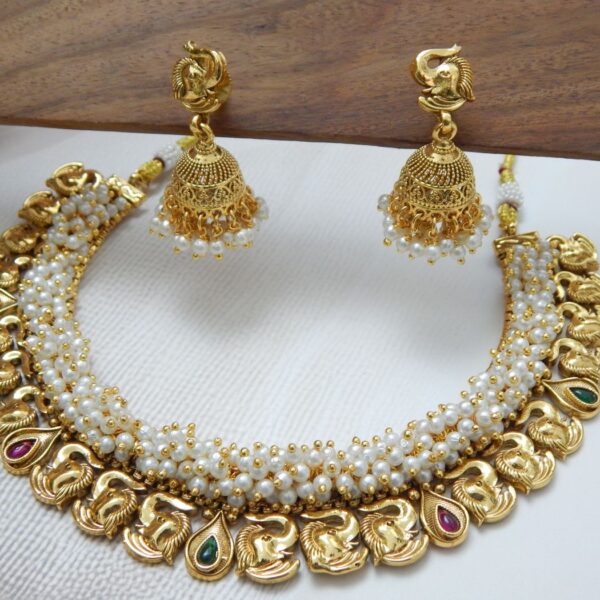 Elephant Motif Pearl Necklace Set