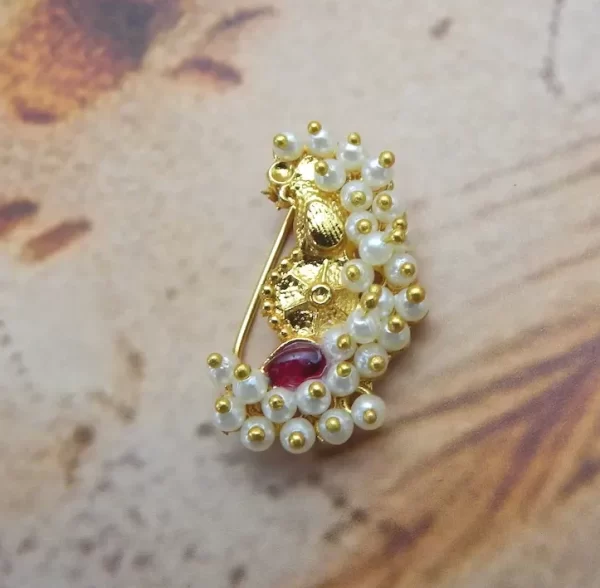 | Plus shipping charges. Free shipping for orders above ₹999.The Peacock Curve Nath brings elegance with a golden peacock motif, detailed carving, and a delicate pearl outline. A regal choice under ₹70, perfect for ethnic wear and traditional occasions.